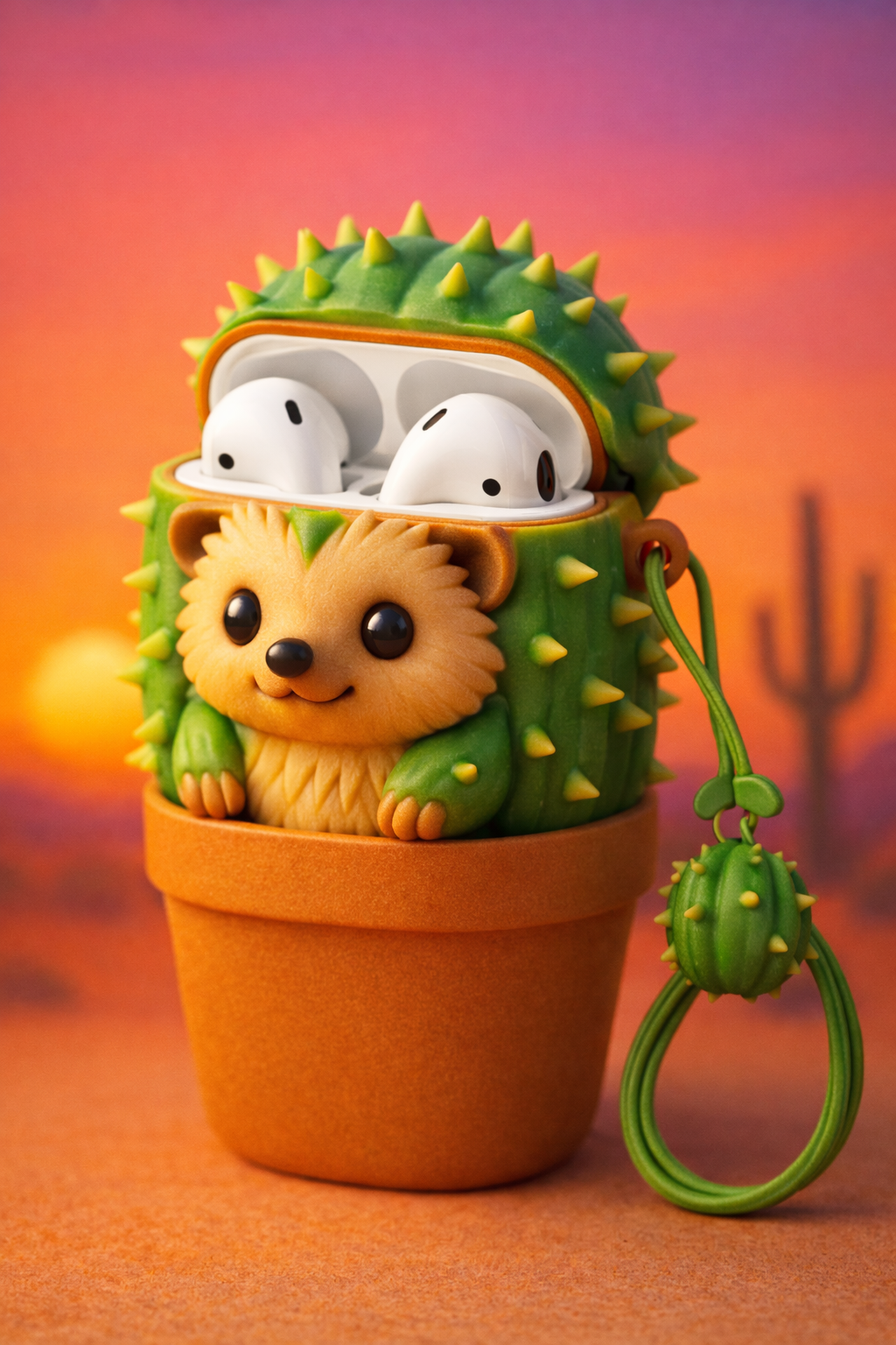 弊社のオリジナルキャラクター "サボネズミ" をモデルにした立体ケースです。最大の特徴は、単なるシリコンケースではなく、金型設計からこだわった「自立するキャラクター造形」である点です。最新のPVC/シリコン成型技術により、細部のシボ感や色味の再現度を極限まで高めています。